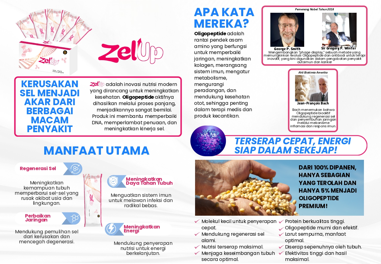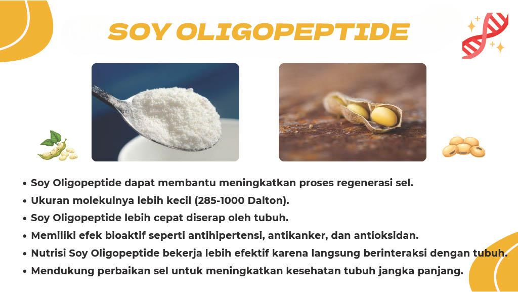 Maka dari itu, untuk meregenerasi sel, kita butuh Suplement yang mengandung Soy Oligopeptide.